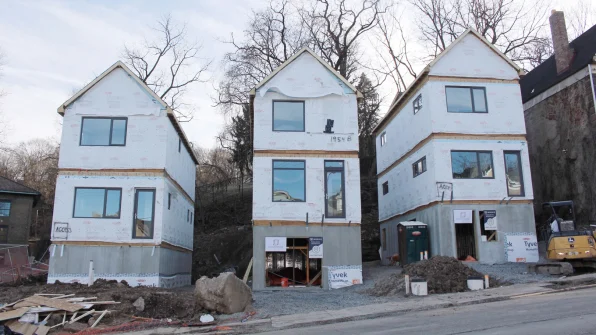 This new duplex sitting on a formerly vacant lot in Pittsburgh has just two floors. But if the owners ever need more space in the future, the roof of the building can be removed, and another box can be set in place in a day to create a third floor.
