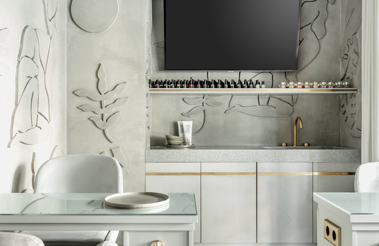In the fall of 2019, interior construction was about to begin on iO Beauty Gallery, an upscale salon and spa in one of Moscow’s wealthiest residential neighborhoods, when its founder had a change of heart. She ditched the existing scheme—drawn up by a local firm, it was crammed with the kind of glitzy gold fixtures and ostentatious furnishings that have long populated Russian luxury design stereotypes—and instead hired Asthetíque, a New York studio she’d just discovered on Instagram. “When the client saw our work, she knew we would understand that the space didn’t need a lot of rich, gold things, but something simple, elegant, and modern,” firm founder and partner Alina Pimkina reports. “Times have changed. Now the people in Moscow who have money travel the world. They aren’t scared of minimalism.”